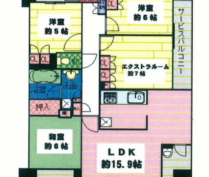 バルコニーが三方に面していて陽当たり・通風良好なお部屋です。