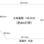 「高槻市」駅までバスを使用した場合は6分、バス停「春日町」から徒歩4分の立地で、フラットな道のりです。周辺は中高層住宅を主体とする良好な街が形成されている地域です。比較的整った街並みが形成されていて、教育施設やスーパー、公園などが徒歩約10分圏内に揃っていて子育て世代には嬉しい立地です。有効敷地面積は約44.87坪。前面道路は約6mの西側道路と南側約4mの角地になっています。敷地間口は西側約9.42m・南側約11.30mと隅切り部分約2.94mの合計約23.66mの広さになっており、大変開放感があります。