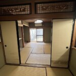 玄関が南に向いていて道を隔てて空き地になっていますので1階和室を通じて奥の台所まで光が届いています。